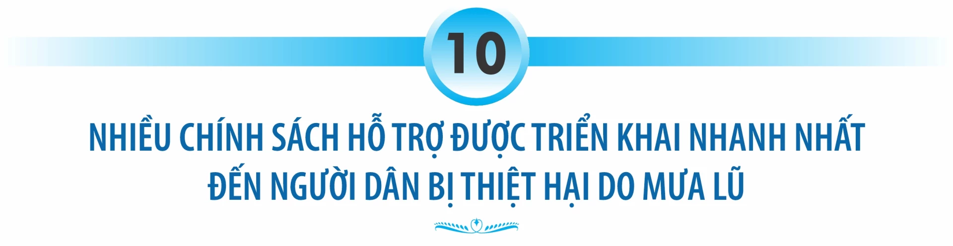 Tỉnh Khánh Hòa đã ban hành nhiều chính sách hỗ trợ sớm nhất, nhanh nhất đến người dân. Theo đó, hộ gia đình có nhà bị sập hoàn toàn hoặc bị nước cuốn trôi sẽ được hỗ trợ 60 triệu đồng/nhà; nhà bị ngập, sập một phần hoặc hư hỏng nặng sẽ được hỗ trợ 30 triệu đồng/nhà để sửa chữa; hộ gia đình có nhà bị ngập, ảnh hưởng đến đời sống, có khó khăn được hỗ trợ 1 triệu đồng/nhân khẩu; hỗ trợ 800.000 đồng/học sinh để mua đồng phục, sách vở và đồ dùng học tập. Bên cạnh đó, tỉnh cũng đã kịp thời hỗ trợ cho người ở trọ, người chưa đăng ký cư trú để giúp người dân sớm vượt qua khó khăn, ổn định cuộc sống.