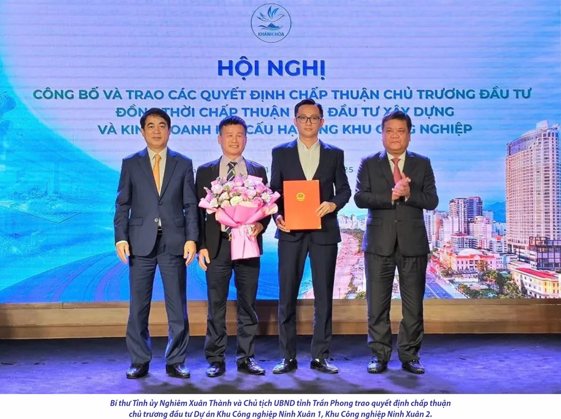 Ngày 31-12-2025, UBND tỉnh tổ chức Hội nghị công bố và trao các quyết định chấp thuận chủ trương đầu tư đối với 3 dự án khu công nghiệp quy mô lớn, gồm: Khu Công nghiệp Ninh Xuân 1 (quy mô 500ha), Khu Công nghiệp Ninh Xuân 2 (490ha), Khu Công nghiệp Ninh Diêm 1 (240ha), với tổng vốn đầu tư hơn 11.400 tỷ đồng. Đây là những dự án hạ tầng khu công nghiệp được kỳ vọng hình thành hệ thống công nghiệp hiện đại, đồng bộ tại khu vực phía bắc Khánh Hòa.