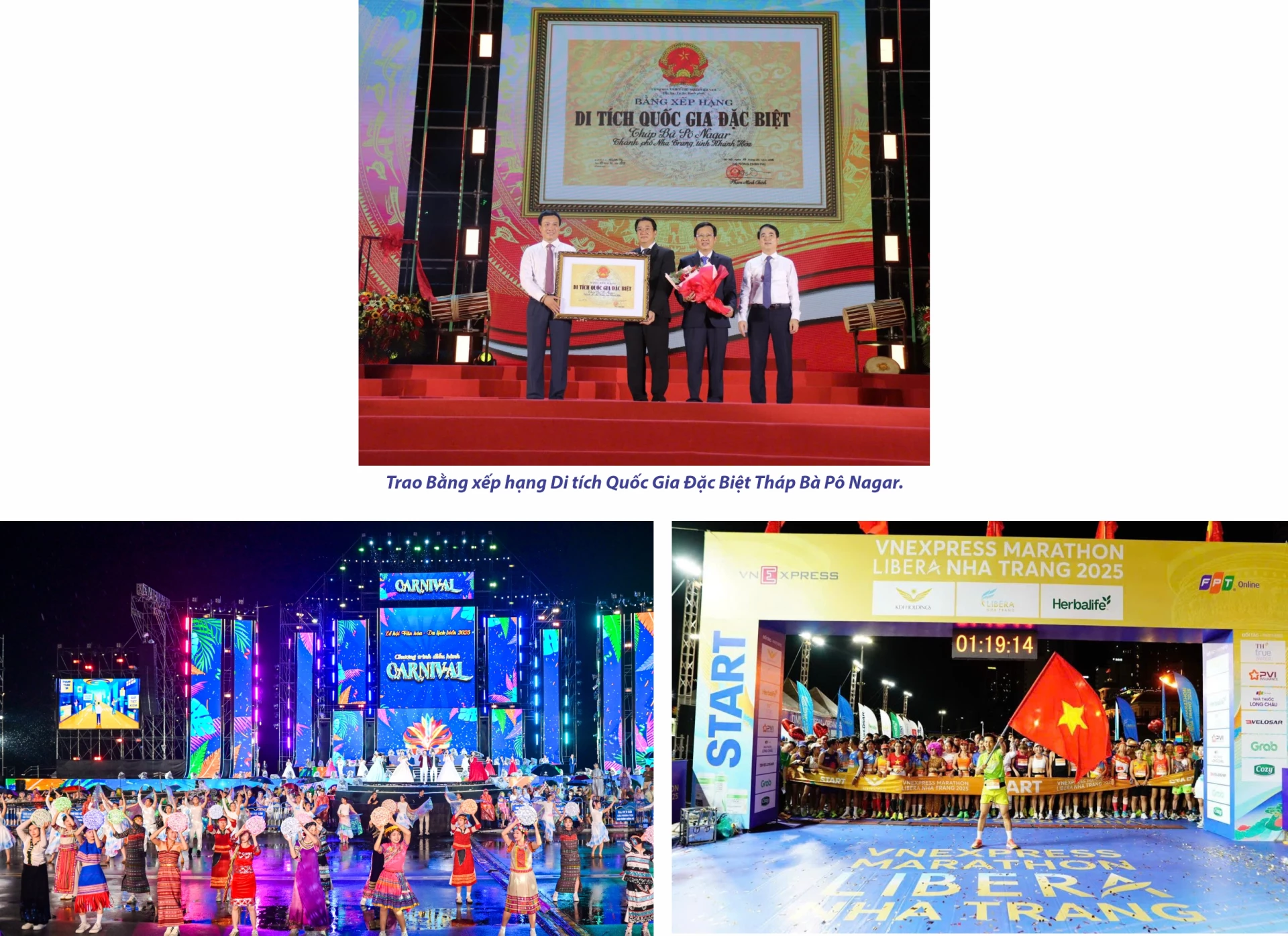 Năm 2025, nhiều sự kiện văn hóa - thể thao được tổ chức thành công tại Khánh Hòa. Trong năm, Thủ tướng Chính phủ đã trao Bằng xếp hạng di tích quốc gia đặc biệt đối với di tích quốc gia Tháp Bà Pô Nagar. Cùng với đó, Bộ Văn hóa, Thể thao và Du lịch đã vinh danh 3 di sản văn hóa phi vật thể gồm: Tri thức khai thác và chế biến yến sào Khánh Hòa được đưa vào Danh mục di sản văn hóa phi vật thể quốc gia; Lễ hội Yến sào Khánh Hòa được đưa vào Danh mục di sản văn hóa phi vật thể quốc gia; Tri thức khai thác và chế biến trầm hương Khánh Hòa được đưa vào Danh mục di sản văn hóa phi vật thể quốc gia. Tỉnh cũng đã tổ chức thành công Lễ hội Văn hóa - Du lịch biển trong khoảng thời gian từ cuối tháng 5 đến hết tháng 6, với chuỗi hơn 40 sự kiện, hoạt động văn hóa, thể thao, du lịch, bảo vệ môi trường. Trong đó, điểm nhấn là chương trình Đại nhạc hội “Nha Trang Say Hi”; chương trình giao lưu văn hóa nghệ thuật quốc tế; chương trình diễu hành Carnival. Tổng lượt khách du lịch đến Nha Trang - Khánh Hòa trong thời gian diễn ra lễ hội đạt gần 1,5 triệu lượt, trong đó có gần 500.000 lượt khách quốc tế. Giải chạy VnExpress Marathon Libera Nha Trang 2025 được tổ chức thành công tại Khánh Hòa vào ngày 24-8-2025, thu hút kỷ lục 13.000 vận động viên tham gia nhiều cự ly, góp phần quảng bá du lịch và thể thao địa phương. |