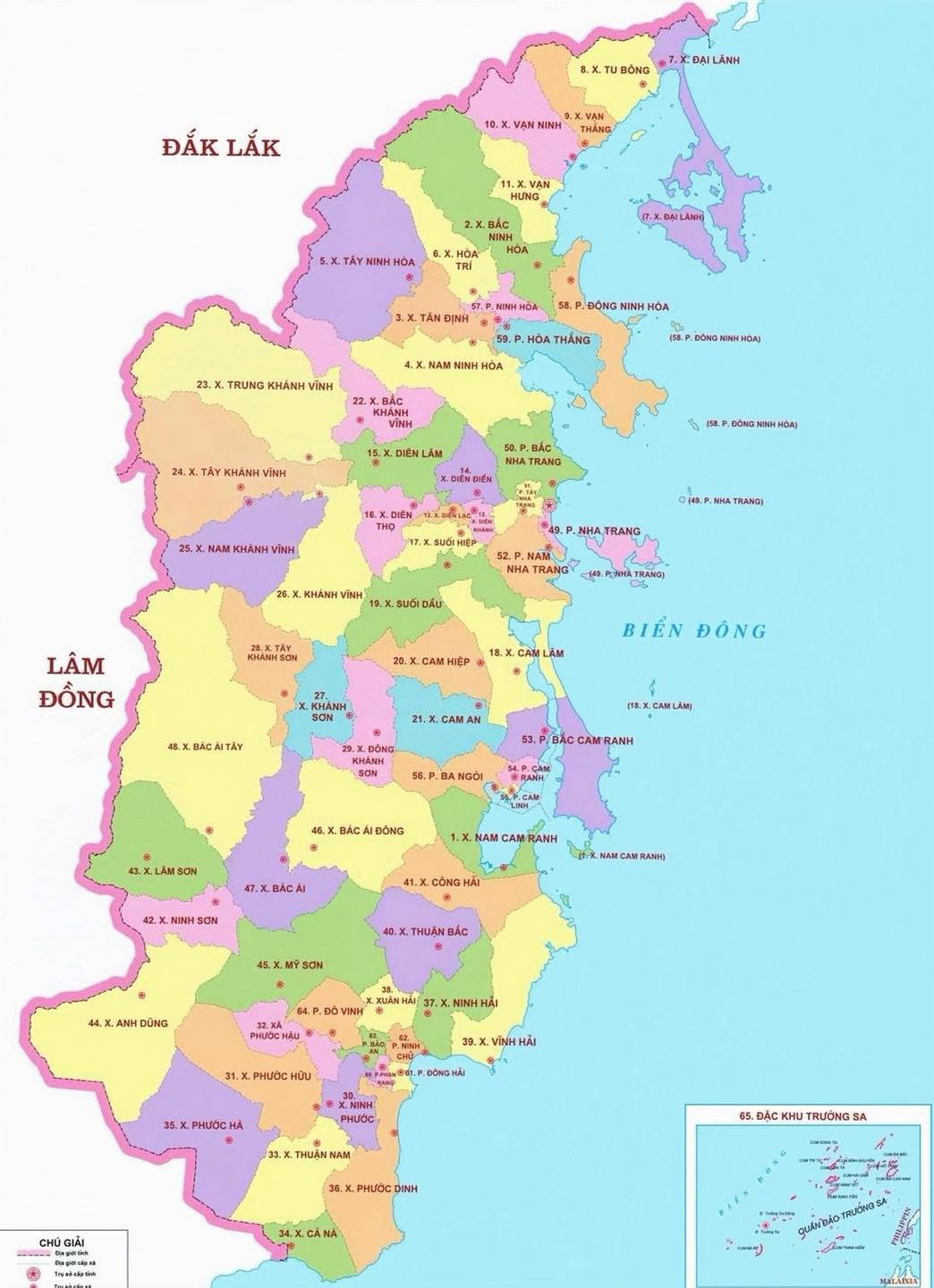 Thực hiện chủ trương tổ chức chính quyền địa phương theo mô hình 2 cấp, sáp nhập, hợp nhất đơn vị hành chính cấp tỉnh, cấp xã theo tinh thần Nghị quyết số 60, ngày 12-4-2025 của Ban Chấp hành Trung ương Đảng khóa XIII, từ ngày 1-7-2025, tỉnh Ninh Thuận và tỉnh Khánh Hòa chính thức hợp nhất thành tỉnh Khánh Hòa với 65 đơn vị hành chính cấp xã (gồm 48 xã, 16 phường, 1 đặc khu).
