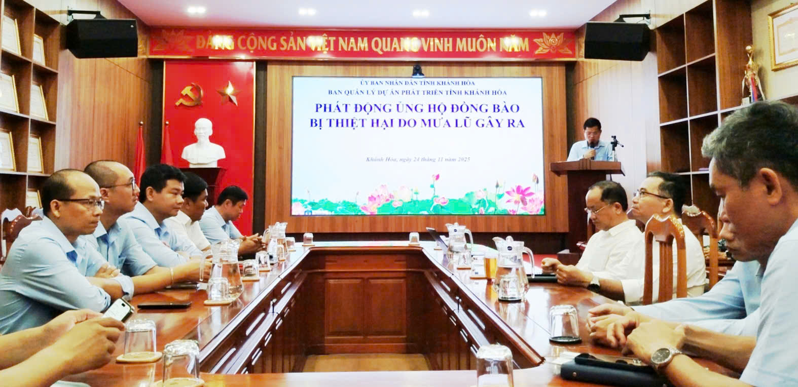 Hưởng ứng lời kêu gọi đó, sáng ngày 24/11/2025, Ban Quản lý dự án Phát triển tỉnh Khánh Hòa đã tổ chức phát động ủng hộ đồng bào bị ảnh hưởng bởi mưa lũ tại Khánh Hòa. Tham gia buổi phát động, ngoài viên chức và người lao động của Ban QLDA còn có sự chung tay của các đơn vị tư vấn, các nhà thầu đang tham gia thực hiện những dự án do Ban làm chủ đầu tư.