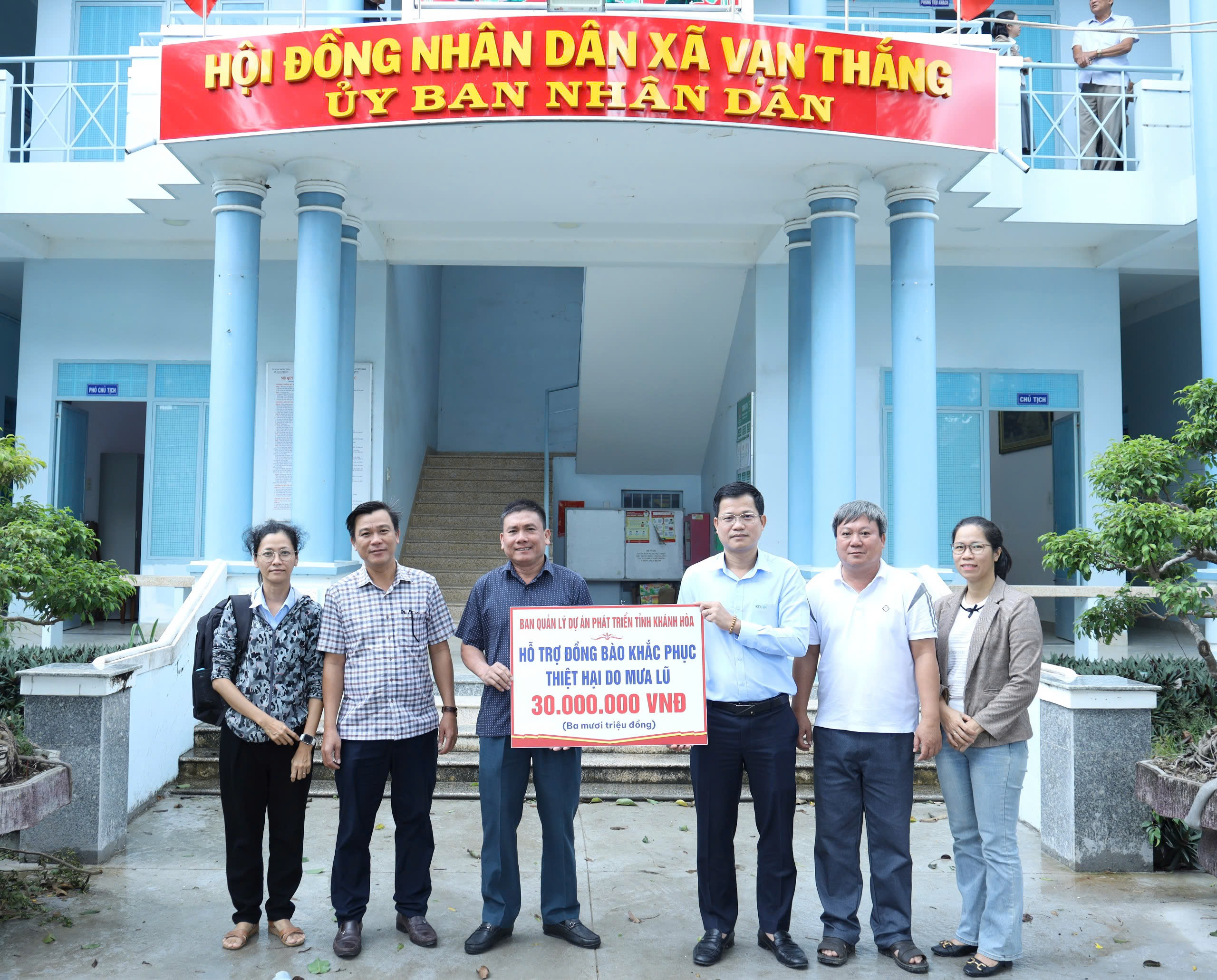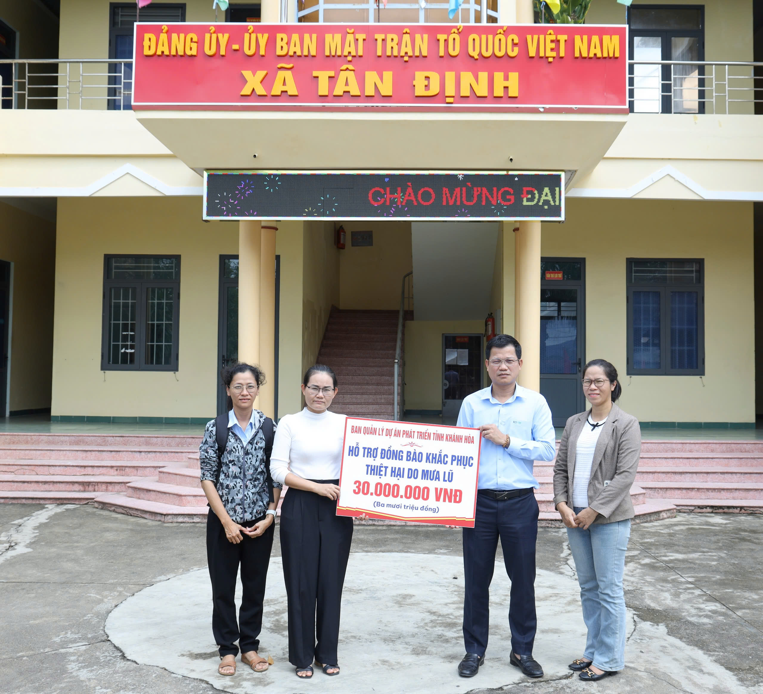 Phát huy truyền thống “Lá lành đùm lá rách”, tinh thần tương thân tương ái, chung tay cùng cộng đồng vượt qua khó khăn, ngày 28-29/11/2025, Ban Quản lý dự án (QLDA) Phát triển tỉnh Khánh Hòa đã đến thăm hỏi và trao tiền ủng hộ cho đồng bào bị ảnh hưởng bởi mưa lũ trên địa bàn tỉnh cho Ủy ban MTTQ Việt Nam tỉnh Khánh Hòa và Ủy ban MTTQ Việt Nam các xã, phường Bắc Nha Trang, Nam Nha Trang, Tây Nha Trang, Diên Khánh, Diên Điền, Diên Lạc, Tu Bông, Vạn Thắng, Tân Định, Hòa Thắng, Ninh Hòa.