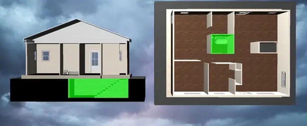 Những vị trí an toàn trong nhà để ẩn nấp khi có lốc xoáy xảy ra (Ảnh: Fox).